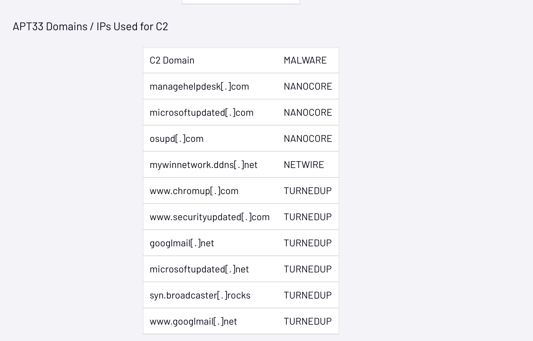 When there are attacks that impact large numbers of organizations there will typically be detailed reporting on them from government agencies involved in cyber defense and private organizations that provide incident response, Cyber Threat Intelligence (CTI), and general cybersecurity services. Here’s a little slice of a report from Mandiant- showing attacker domains as one of several IoCs - used in a spearphishing campaign a few years ago. These domains are listed as “used for C2” - meaning that the attacker/s use them to push tools into the victim environment and/or exfiltrate data out to their servers in those domains.