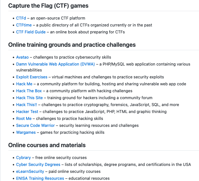It’s probably a lot easier than you think though - as mentioned above there are a number of easy and low cost ways to start building up your hands-on cyber skills. Here’s a short list of some of the things you can do and make use of for these efforts: